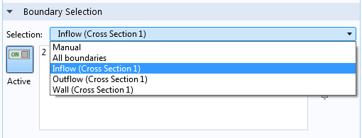 Improvements have been made that enable you to more easily specify selections in COMSOL Multiphysics®. In particular, it is now straightforward to generate 2D selections from selections that have already been specified in 3D. This is useful, for example, if you want to create a 2D axisymmetric geometry from an imported 3D geometry. Assuming that the CAD software has defined 3D boundary selections consisting of the inflow, outflow, and wall for the modeling domain, these entities will now be available as 2D boundary selections when defining the physics for the axisymmetric model.