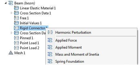 The Rigid Connector feature is now available for use in the Beam interface. A set of nodes can be selected to form a rigid region and be used, for example, to avoid overestimating the flexibility at beam connections. It can also be a means of applying off-center loads, springs, or extra inertia contributions.