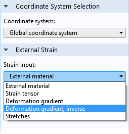 As part of this improvement, the External Strain attribute under the Linear Elastic Material and Nonlinear Elastic Material nodes has been expanded with several new options. These options allow for supplying inelastic strains in several forms and you can also transfer inelastic strains from other physics interfaces to this attribute. Additionally, an External Strain attribute with similar properties has been added to the Hyperelastic Material.