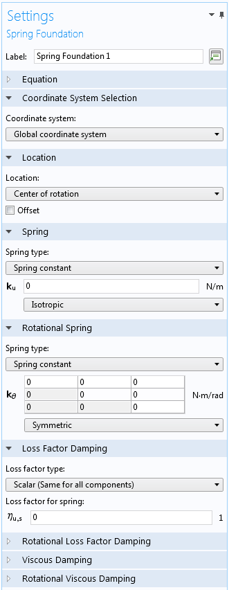The Rigid Connector and Rigid Domain features in all physics interfaces have been augmented with a spring boundary condition called Spring Foundation. It has the following properties: