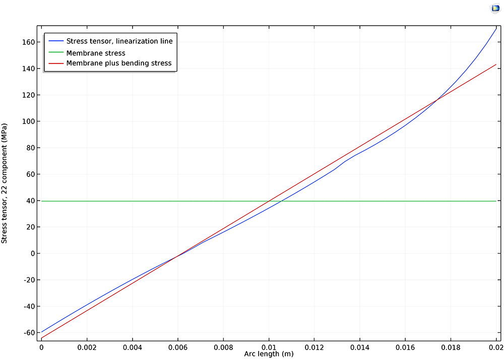 The new Stress Linearization postprocessing node makes it possible to select the edges on which a stress linearization evaluation is to be performed. Membrane, bending, and peak stresses are reported and stress intensities are computed for each such stress classification line.