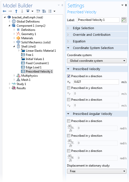 In the Shell, Plate, and Beam interfaces, you can provide values for harmonic perturbation for the Prescribed Velocity and Prescribed Acceleration nodes.
