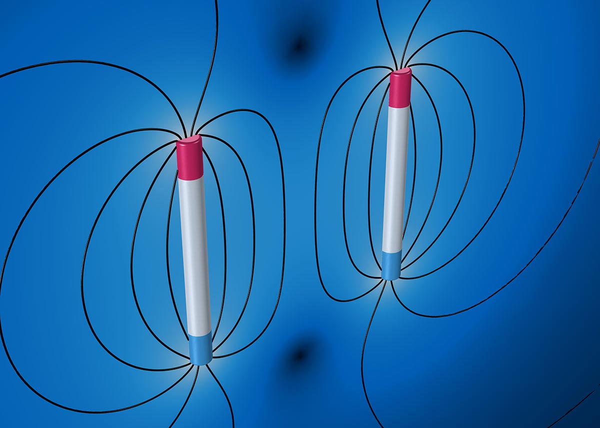 Two parallel magnetized rods of one meter length, placed one meter apart. The remanent flux density inside the rods is chosen such that the analytical model predicts a repelling force between the two rods of exactly one Newton.Application Library paths: