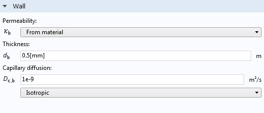The Two-Phase Darcy’s Law interface can now be used to define permeable walls on interior boundaries. These interior boundaries are used to represent thin, low-permeability structures. The Thin Barrier feature avoids expensive meshing of thin structures, such as geotextiles or perforated plates. Additionally, the permeability of the interior wall can be either isotropic or anisotropic.