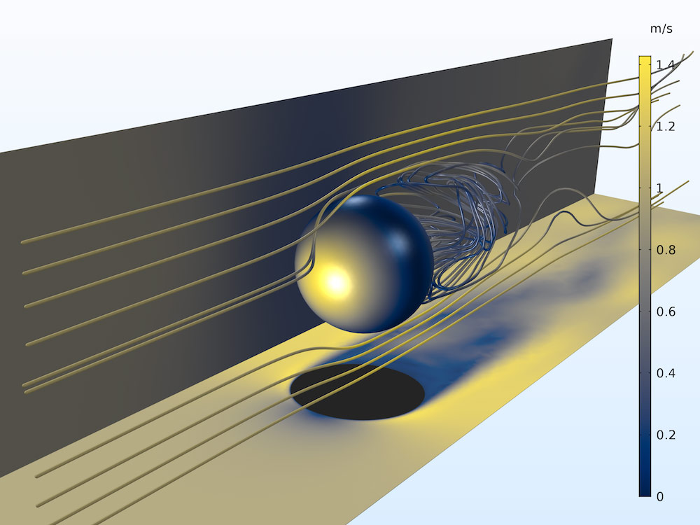 Time-dependent model of the flow around a sphere creating a Karman vortex street downstream, solved more quickly in COMSOL Multiphysics® version 5.3a.