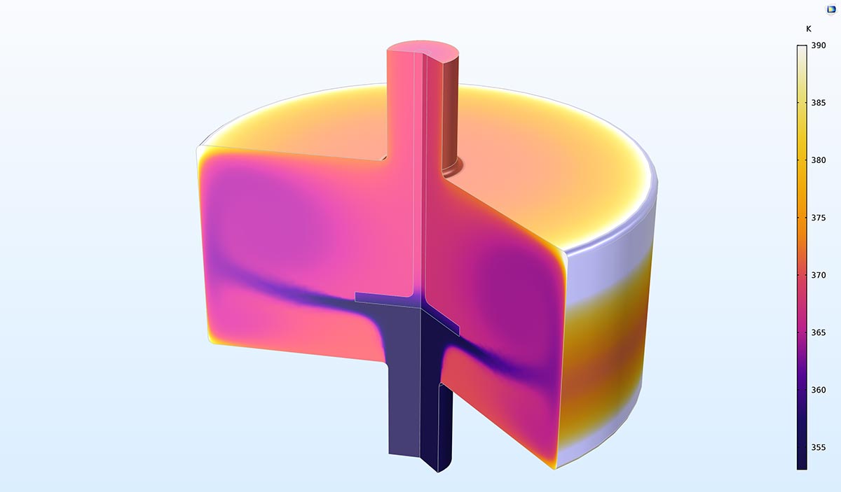 A second possible application of the thermodynamic properties database is for the modeling of pure fluid flow problems or fluid flow problems involving heat transfer, i.e., without chemical reactions involved. In this tutorial model, you can investigate the properties of a liquid coolant for internal combustion engines. Although pure water works well as a coolant, to prevent freezing at low temperatures, a mixture of ethylene glycol and water is normally used to lower the freezing point. The built-in thermodynamics functionality is used here to show how the boiling point, density, viscosity, thermal conductivity, and heat capacity all depend on the composition of the coolant mixture, and how changes in these properties affect the cooling process.