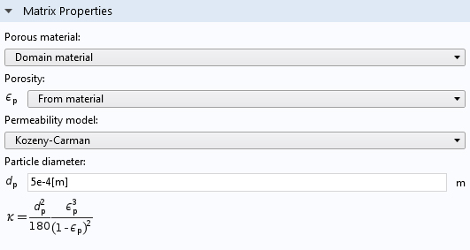 The Kozeny-Carman permeability model, available for the Darcy's Law interface in COMSOL Multiphysics® version 5.3a, allows you to estimate the permeability of granular media from the porosity and particle diameter.