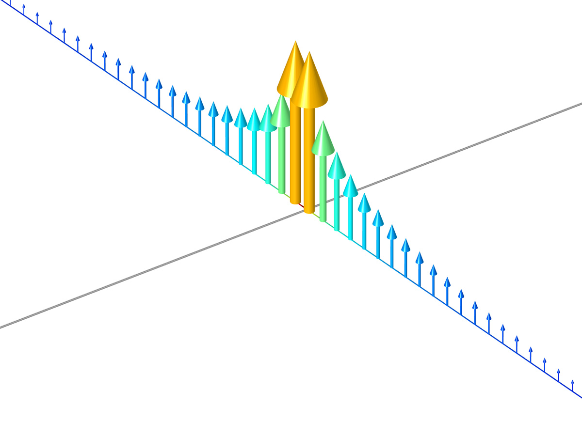 An Arrow Line plot from the Stray Current Pipeline Corrosion model. Stray current corrosion rate along a pipe shown with an Arrow Line plot. Stray current corrosion rate along a pipe shown with an Arrow Line plot.