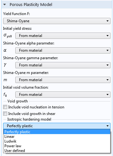 The porous plasticity material models have been augmented with plastic hardening and options for taking void nucleation into account.