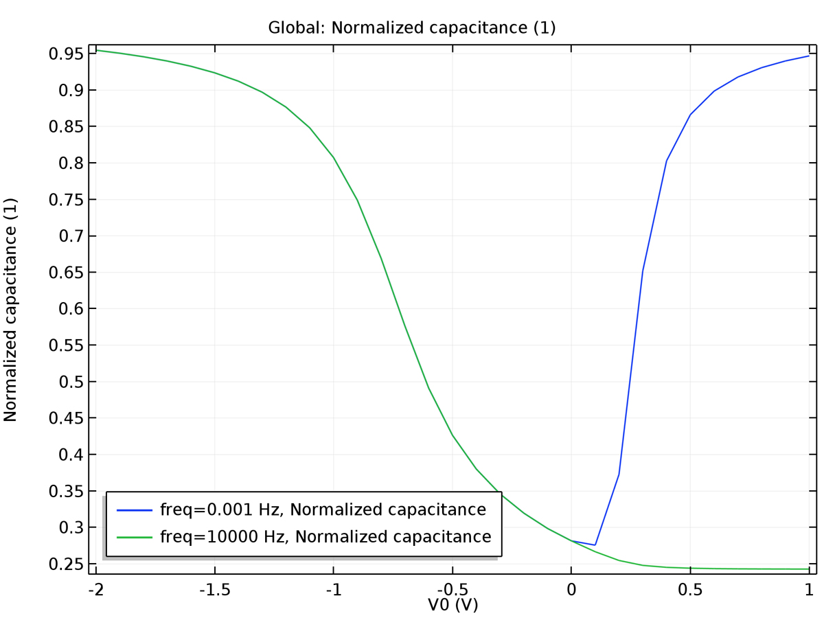 The metal-silicon-oxide (MOS) structure is the fundamental building block for many silicon planar devices. Its capacitance measurements provide a wealth of insight into the working principles of such devices. This tutorial constructs a simple 1D model of a MOS capacitor (MOSCAP). Both the low- and high-frequency C-V curves are computed using the approach of small-signal analysis. The model employs the quasi-Fermi level formulation and the Semiconductor Equilibrium study step, both new in COMSOL Multiphysics® version 5.3a.